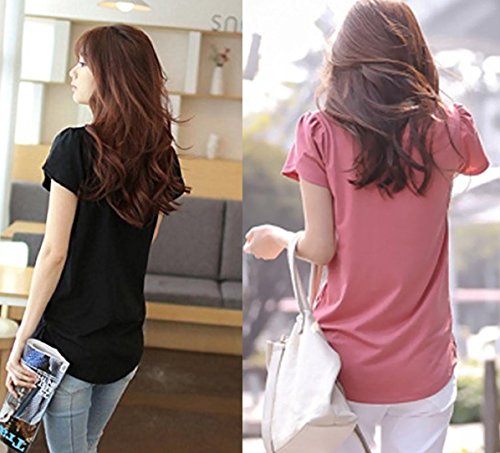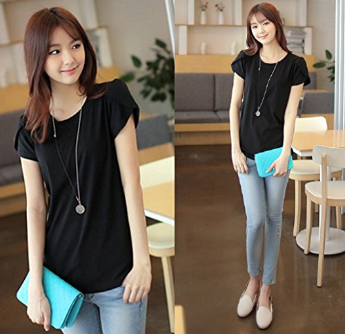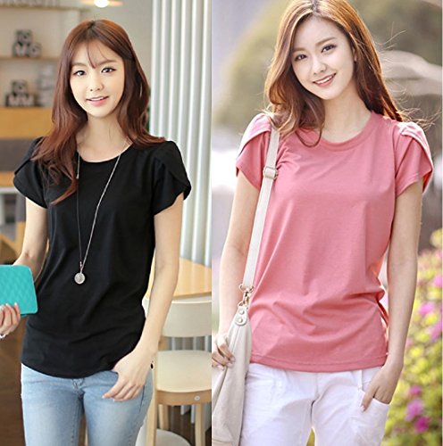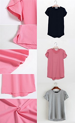 -. Feature : 定番人気のだぼゆるフリル袖Tシャツです。半袖パフスリーブがアクセントになったお洒落で旬な1枚です。女性らしい柔らかい印象のクルーネック(丸襟、丸首)がデコルテをキレイに魅せてくれるフェミニンなレディース・トップスです。薄手の生地がふんわり風に揺れ、爽やかな印象を与えてくれるので、これからの季節に大活躍すること間違いなし♪ トレンドのボリュームスリーブが気になる二の腕を華奢見せしてくれます。 / 春夏に活躍する肌ざわりのよい通気性抜群の生地が、着心地よく清潔感のあるカットソー。女性らしいエレガントな雰囲気を醸し出し、シンプルな無地デザインが清楚なきちんとコーディネートにも最適です。カジュアルにもシックにも、取り入れるだけでオンナ度が上がるゆったり便利シャツ。カジュアルなデイリーユースにも、ビジネス、オフィス、通勤、通学、デートにも。フォーマルやオケージョン(パーティ、結婚式、二次会、お呼ばれ、入学式、入園式、卒業式、卒園式、発表会、演奏会、七五三等)にも。 / シンプルで大人可愛いデザイン・カットソーは、裾をボトムにINしても、そのままさらりと羽織って着ても◎ スカートでもデニムでもOKで、ボトムスを選ばないのも嬉しいオシャレアイテム。デニム、ワイドパンツ(ガウチョパンツやスカーチョ)との楽ちんコーデや、キチンと感のあるタイトなボトムスと、ブーツやヒール、パンプスなどのシューズを合わせれば、ぴりっと辛口にまとまった、大人のカジュアルコーディネートが完成。 / 毎日着ても飽きのこない着まわし力の高いナチュラルなデザイン。春、夏はインナーやキャミソールの上に羽織って♪ 秋、冬にはやアウター(セーター チェスター トレンチ ダウン コート ジャケット)やファッション小物(ストール マフラー スヌード)などを合わせてコーデを楽しんでくださいね。さらりと着れる女性らしいシルエットは体型カバー効果もあり、ママコーデやお洒落なマタニティウエアとしてもおススメです。 / リピ買い続出の人気アイテムでプレゼントにも◎♪シンプルな無地で落ち着いたフェミニンな雰囲気なので、年齢問わず(20代、30代、40代、50代)季節問わず(春、夏、秋、冬)オールシーズン活躍すること間違いなしの便利アイテムです。【カラー】ブラック(黒色)、グレー(灰色)、ピンク(桃色)【サイズ 】M、L、XL 【素材】コットン、ポリエステル、裏地:なし、付属品:なし   ※サイズ(寸法)をお確かめの上、ご購入ください。