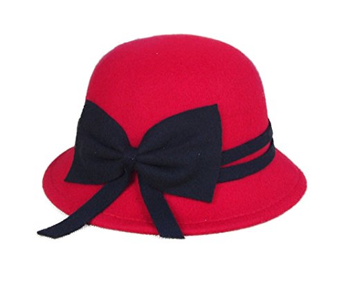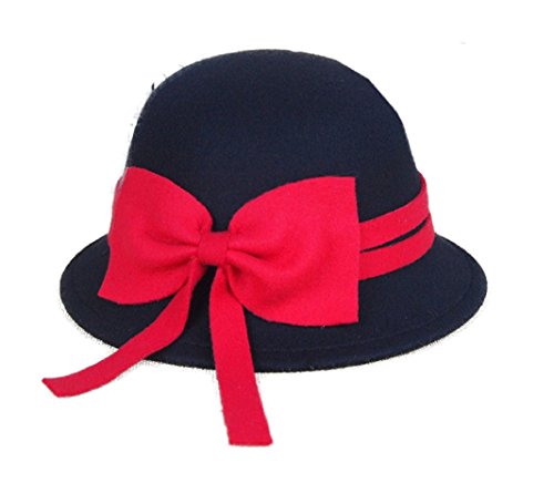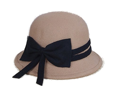 (FUNNY365)/Accessories/Hats/DIRECT FROM USA/FUNNY365 Womens Bowknot Wool Cloche Bucket Hat Dress Winter Cap Fashion
