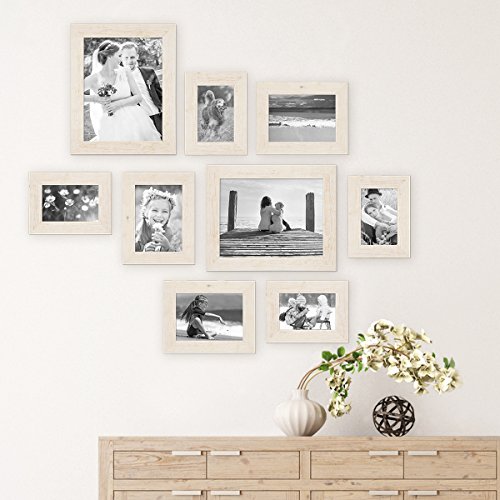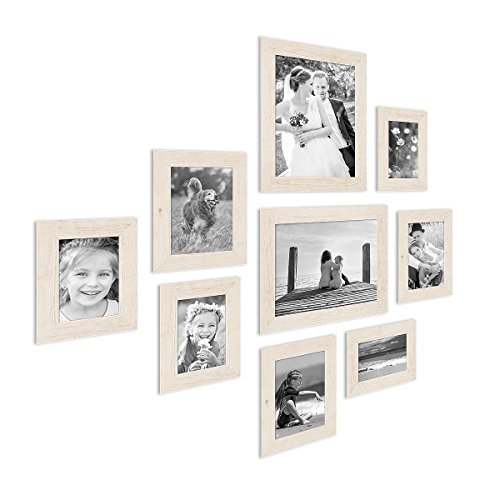 -. Feature : 3 solid wood picture frames, made in Germany, including glass insert / High-quality border in beach-house style, wood texture visible, rough-hewn surface / Set includes picture hooks, template to be affixed and instructions with design ideas / Can be placed in a standing position or hung horizontally or vertically