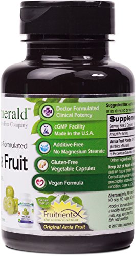 -. Binding : Health and Beauty -. Brand : Fruitrients -. EAN : 0767674421318 -. Feature : Fruitrients - Amla Fruit Extract - 60 caps -. IsAdultProduct : 0 -. Label : Fruitrients -. LegalDisclaimer : * These statements have not been evaluated by the Food & Drug Administration. These products are not intended to diagnose, treat, cure or prevent any disease. Please contact your healthcare professional immediately if you experience any unwanted side effects. The information contained herein is for informational purposes only and does not establish a doctor-patient relationship. Please be sure to consult your physician before taking this or any other product. -. Manufacturer : Fruitrients -. MPN : 743650002030 -. PackageQuantity : 1 -. PartNumber : 743650002030 -. ProductGroup : Health and Beauty -. ProductTypeName : HEALTH_PERSONAL_CARE -. Publisher : Fruitrients -. Studio : Fruitrients -. Title : Emerald Laboratories (Fruitrients) - Amla Fruit - Natural Source Vitamin C & Powerful Immune Support - 60 Vegetable Capsules -. UPC : 743650002030