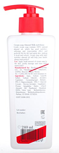 - Gentle cream soap contains 100% natural almond oil, which has good nutritive, softening and rejuvenating effect and perfectly fits for dry and aging skin, making it fresh and velvety.