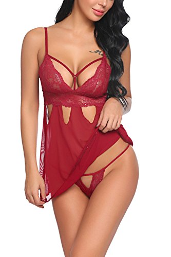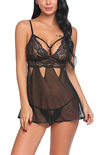 -. Binding : Apparel -. Brand : ADOME -. Department : womens -. Feature : 100% Brand New / Women mesh chemise with strappy detailing and adjustable spaghetti straps, featuring sheer lace cups with a scalloped trim / S: Under Bust: 28.7" Center Back Length: 15.9" ; M : Under Bust: 30.7" Center Back Length: 16.3" / L: Under Bust: 32.7" Center Back Length: 16.7" ; XL : Under Bust: 34.6" Center Back Length: 17.1"; XXL: Under Bust: 36.6" Center Back Length: 17.5" / Package Content: 1 x Women Lingerie Babydoll -. IsAdultProduct : 0 -. Model : ADML007550 -. ProductGroup : Apparel -. ProductTypeName : UNDERWEAR -. Title : ADOME Women Nightwear Sexy Lingerie Lace Babydoll V Neck Sleepwear Mesh Chemise