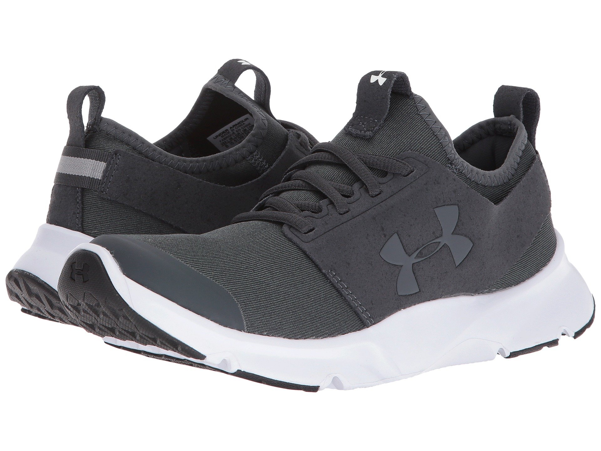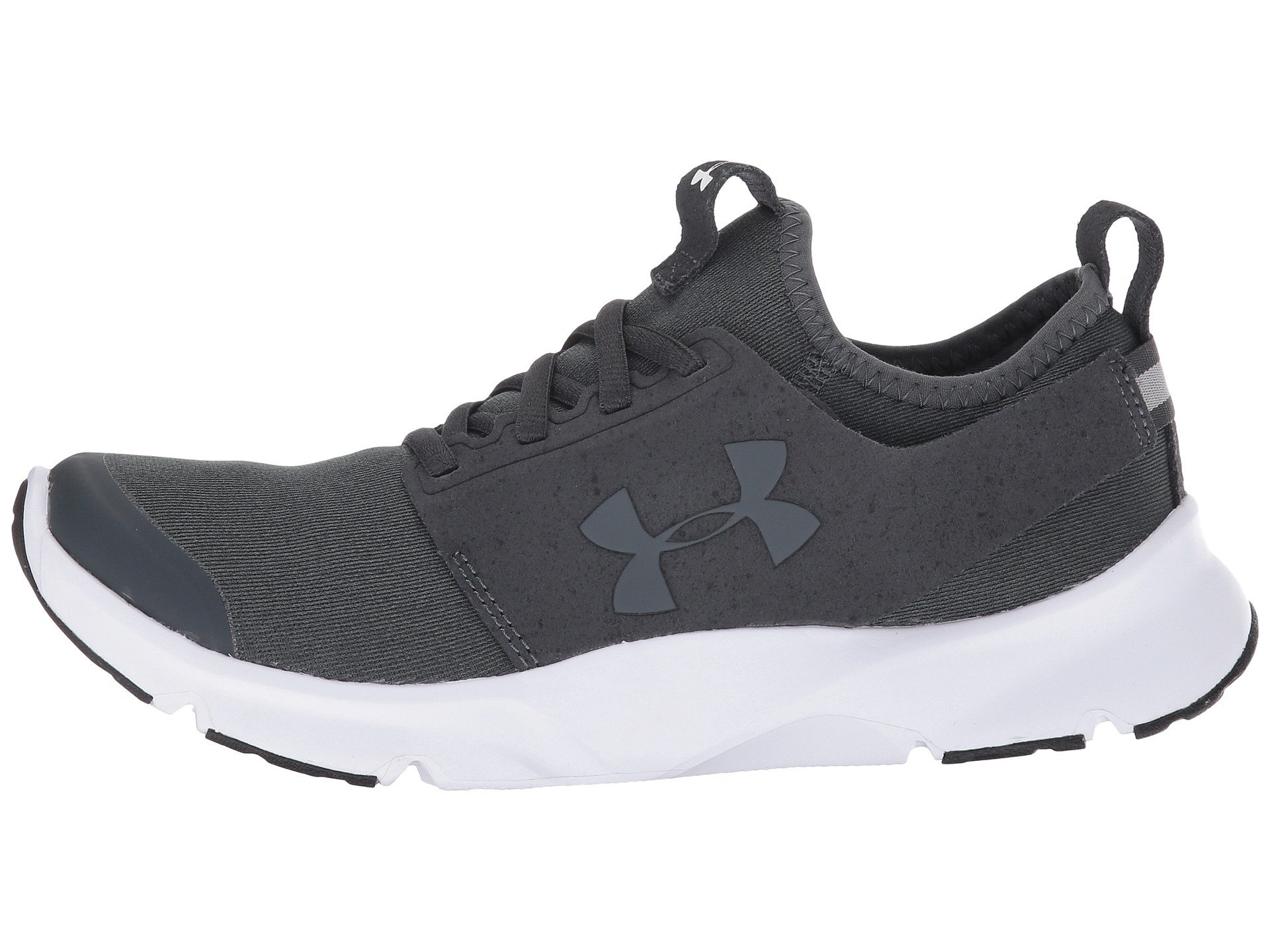 | Product Information SKU: #8752415Stay on top of your training plan by keeping in perfect stride in the Under Armour? UA Drift RN Mineral running shoe!Predecessor: None. Support Type: Neutral. Cushioning: Lightweight, flexible response. Surface: Road. Differential: 10 mm.Soft, breathable mesh upper with printed synthetic overlays. Mid-foot saddle offers adjustable comfort and a locked down fit. Lace-up closure. Molded toe cap adds protection and durability. Front and rear pull loops. Bootie construction.Smooth fabric lining supplies a great in-shoe feel. Full-length EVA sockliner. Cushioned EVA midsole provides a lightweight, responsive ride. Strategically-placed rubber traction pads over high-impact areas deliver light cushioning and long-lasting wear. Imported. Product measurements were taken using size 8, width B - Medium. Please note that measurements may vary by size.Weight of footwear is based on a single item, not a pair.Measurements: Weight: 8 oz |