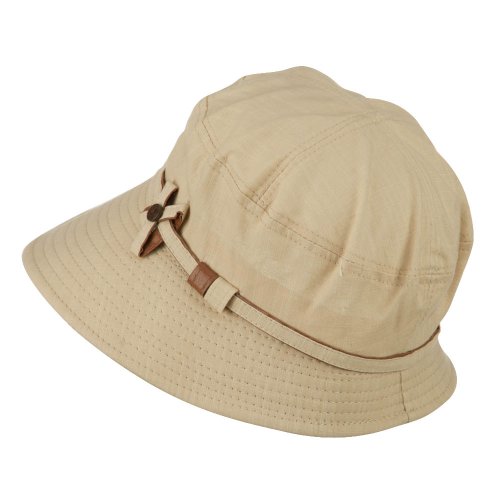 Binding : Apparel Product Description Solid in color, with same colored hatband. Round shaped crown. Button accented hatband with brown trim. Crown is unconstructed. Brim is flexible and downturned. Crushable and rollable. Bucket shaped hat is great for outdoor events, evening walks, and other great spring and summer occasions. Spring and Summer Season. 10 (W) X 11 (L) X 5 1/2 (H) inches. Thin, soft, and light material. Available in different colors and styles. 0