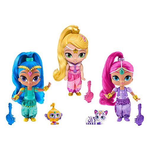 Shimmer and Shine 8-Pieces Pretty Genie Friends Doll Collection Includes Shimmer, Shine, Leah Doll in Satin Outfit and Colored Shoes with Pets and Brushes Meet Shimmer, Shine, Leah, Tala and Nahal! Shimmer, Shine and friends are always looking to maximize the fun! Each doll is dressed in a pretty satin genie outfit, colored shoes and brush accessory.Feature
