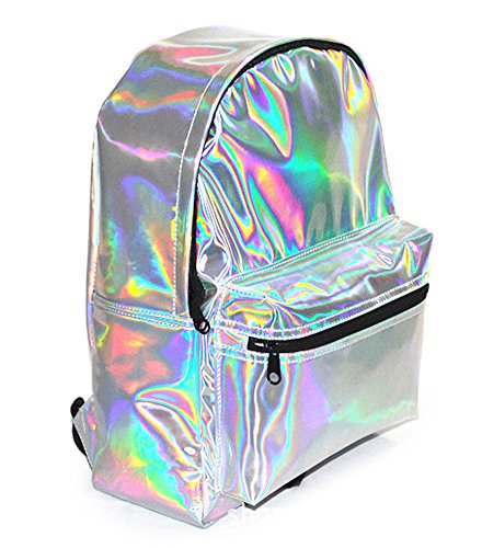 -. Title : Zicac Girl's Sliver Holographic Laser Leather Backpack Travel Casual Satchel