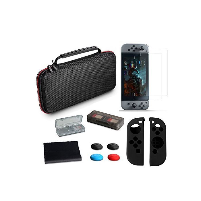 【세트 내용】함축:Nintendo Switch전용 하드 케이스 1매,Nintendo Switch전용 강화 유리 필름 1매,Joy-Con(L)/(R)전용 커버(L흑/R흑) 1세트,카드 케이스 2매,포1매.