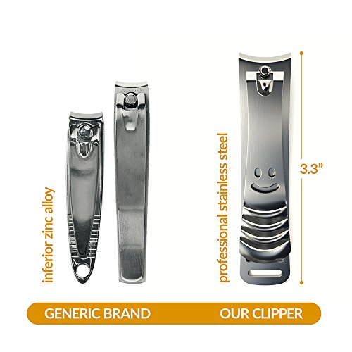 -. Feature : LIFETIME GUARANTEE - Our clippers are backed by a lifetime guarantee. If you are not satisfied or have any issues, simply contact us for a free replacement or full refund, period! / PROFESSIONAL GRADE - Made with stainless steel, not inferior zinc. Our clippers are the choice of professional nail salons, day spas and beauty salons. / LARGE SIZE - At 3.3 inches and extra wide, our clippers are ideal for both light clipping of fingernails or thick, tough toenails with a wide jaw opening. / ANTI-SLIP GRIP - Also includes anti-slip ridges for a better grip and to prevent slipping. / FREE FAUX LEATHER CASE - We've included an attractive, complimentary faux leather case for the perfect set, ideal for storage and travel.