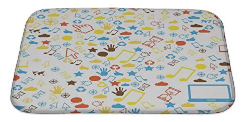 Gear New No Slip Microfiber Memory Foam Communication Pattern Icons Bath Rug Mat, 34" X 21"