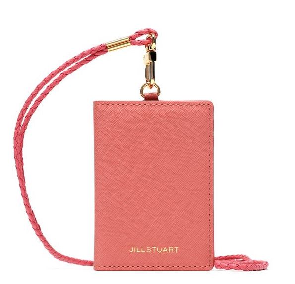고급스러운 사피아노 소가죽 소재에 핑크 컬러 바탕과 JILLSTUART 로고로 포인트를 준 목걸이형 카드홀더 입니다.