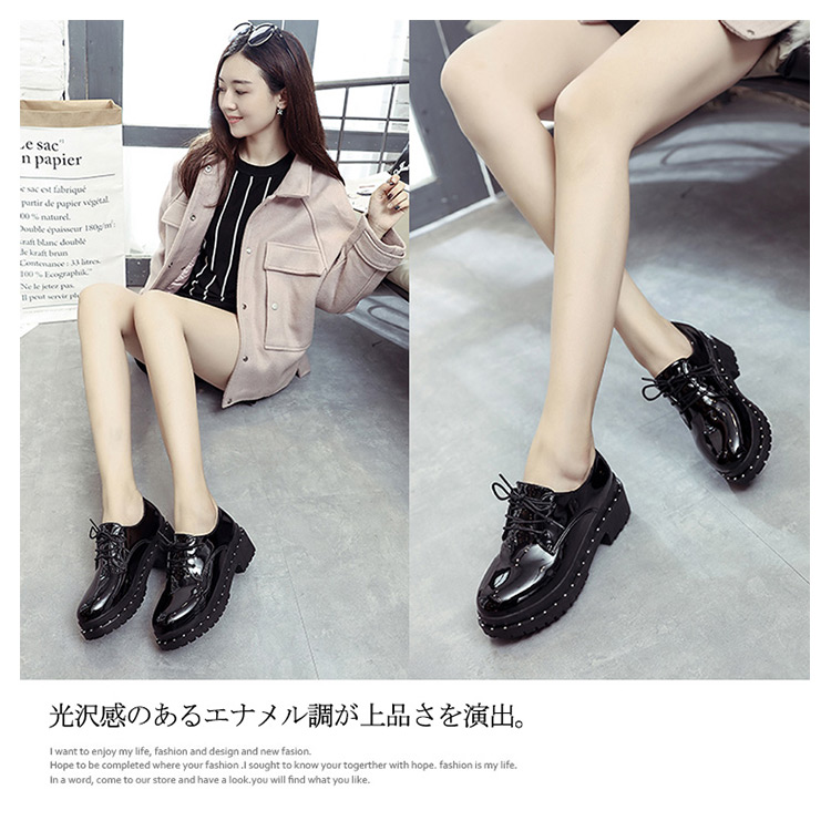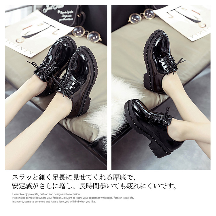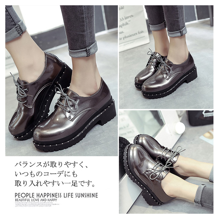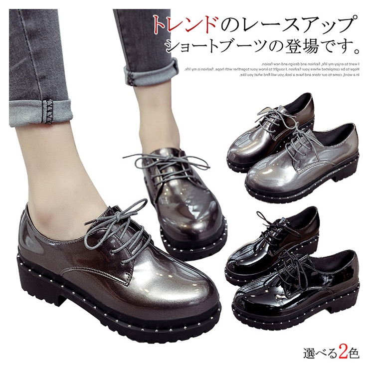| トレンドのレースアップショートブーツの登場です。スラッと細く足長に見せてくれる厚底で、安定感がさらに増し、長時間歩いても疲れにくいです。光沢感のあるエナメル調が上品さを演出。バランスが取りやすく、いつものコーデにも取り入れやすい一足です。これからの季節に一足あるととっても便利です。 | |