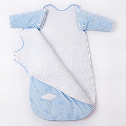 Feature : Winter baby sleeping bag with REMOVABLE long sleeves made with soft cotton fleece chambray featuring tiger embroidery. Can be worn in two ways Vest or Long Sleeve sleeping bag / Generous body fit to let body move and kick, promoting healthy body development / Maximum versatility: Both shoulder snaps and two sides zipper for easy dressing and diaper changes; Opens completely flat for easy dressing. / Soft Cotton Fleece creates a micro-climate around baby's body