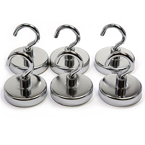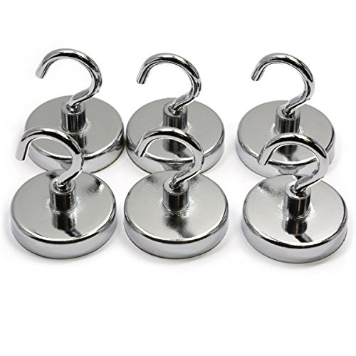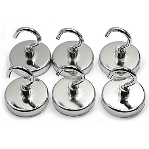 6 Pieces of 18 Pound Holding Power Magnetic Hooks, CMS Magnetics 1.26" in Diameter Silver Color