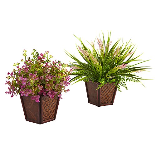 Nearly Natural 6896-S2 Assorted Grass Set with Decorative Planters (Set of 2)