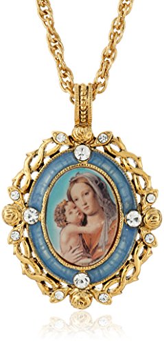 -. Title : Symbols of Faith "Inspirations" 14k Gold-Dipped Crystal Blue Enamel Mary and Child Pendant Necklace