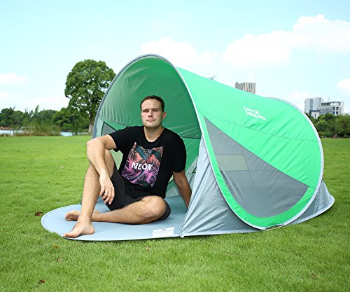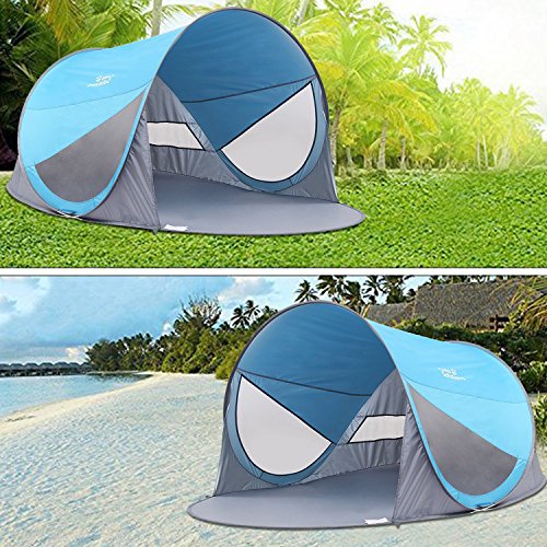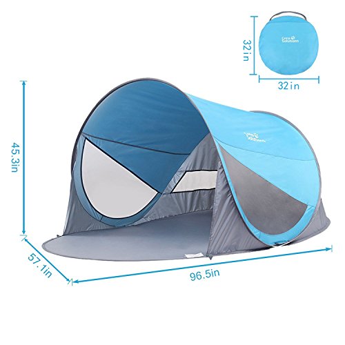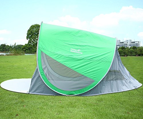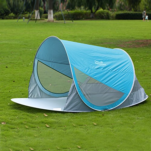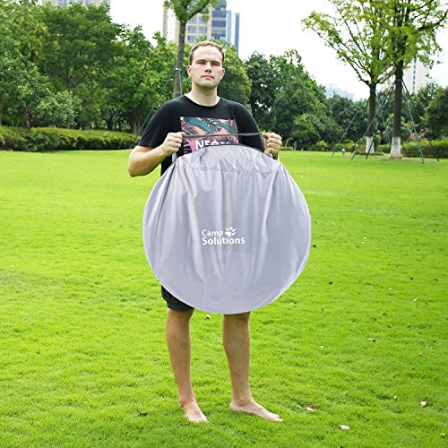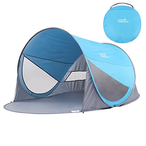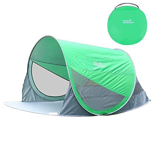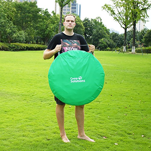 Camp Solutions Lightweight Portable Pop-Up Tent Pop Up Beach Tent from Camp Solutions. It automatically pops up and opens in 1 second and folds back down in only 3 seconds. It's super lightweight at only 2.2 pounds and easily carried to the beach, park and campground. The Pop Up Beach Tent automatically pops open and then coils back down flat into a circle. Set Up in Seconds when sent up the size: 96 x 57x 45 inches Suit For 2-3 person go outside and throw the tent, it will open automatically in second. Folds down in 3 seconds The size when put up: 32 X 32 inch Feature: Made of Durable 190T polyester; CPAI-84 flame retardant material ,50 UPF rating for sun protection Good Ventilation: Ventilation design with dense interwoven mesh, providing better ventilation inside the beach tent Package Included: 1 x Pop Up Beach Tent 1 x Carry Bag 4 X Metal Tent ground stakes Click Add to Cart button right now to get your pop up tent that promises you more relaxed around the beanch 0