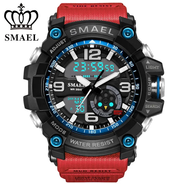 SMAEL 패션 비즈니스 디지털 전자 시계 캐주얼 스포츠 시계 야외 아날로그 군사 듀얼 디스플레이 쿼츠 시계 1617 -유형: 남성 스포츠 시계/인과 시계 -숫자 다이얼, 세 손 다이얼 서명 만든 아름다운 색상 인 관련된. -듀얼 운동 최신 돌파구 일본 원래 디지털 운동, 아날로그 LED 표시, 날짜, 중계기, 시간 표시, 알람, 크로노 방수, 완전한 캘린더, LED 디스플레이, 충격 방지, 정지 시계, 다시 빛 기능 물 저항하는 3 ATM, 30 메터 방수, 수 함께 수영 -보여주는 정확한 시간 패키지 포함: 1 * SMAEL 스포츠 시계 1 * 명령 CardTo 구매자 FAQ (자주 묻는 질문) 당신의 지원 고급! 포장 상세