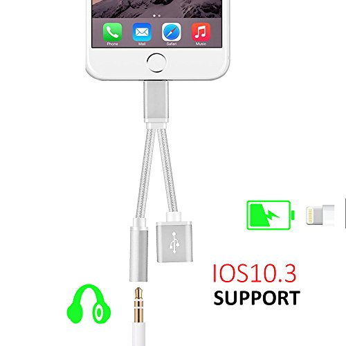 -. Feature : UPGRADED VERSION - Fully supports the iOS 10.3 system update and later versions,perfect for iPhone 7/ 7 Plus, 6/ 6s, 6/ 6s Plus, iPad, iPod and headphones with 3.5mm audio interface. / ADVANCED AUDIO CHIP - Equipped with premium degital audio conversion chip delivering a premium audio/sound output,adapt your audio from a digital source up to 48 khz lossless, 24-bit audio output. NOTE : This adapter does not support calling function / DUAL FUNCTIONAL - 2 in 1 technology,Lighting Changer + Headphone Splitter,this Lightning to 3.5mm adapter supports simultaneous charging and audio output, you can enjoy the fun of listening to music while charging / PLUG AND PLAY ENABLED - This 2 in 1 Lightning Adapter 3.5mm Female Aux Cable for iPhone 7 / 7 Plus needn't require additional charging or audio software to use.Just plug your 3.5 mm Headphoneheadphones / earphones into the jack and listen your sweet music / ULTRA TOUGH CONSTRUCTION - Tough braided exterior and high grade material can be for maximum resistance against everyday wear and tear, Pocketsize,lightweight and exquisite aesthetics
