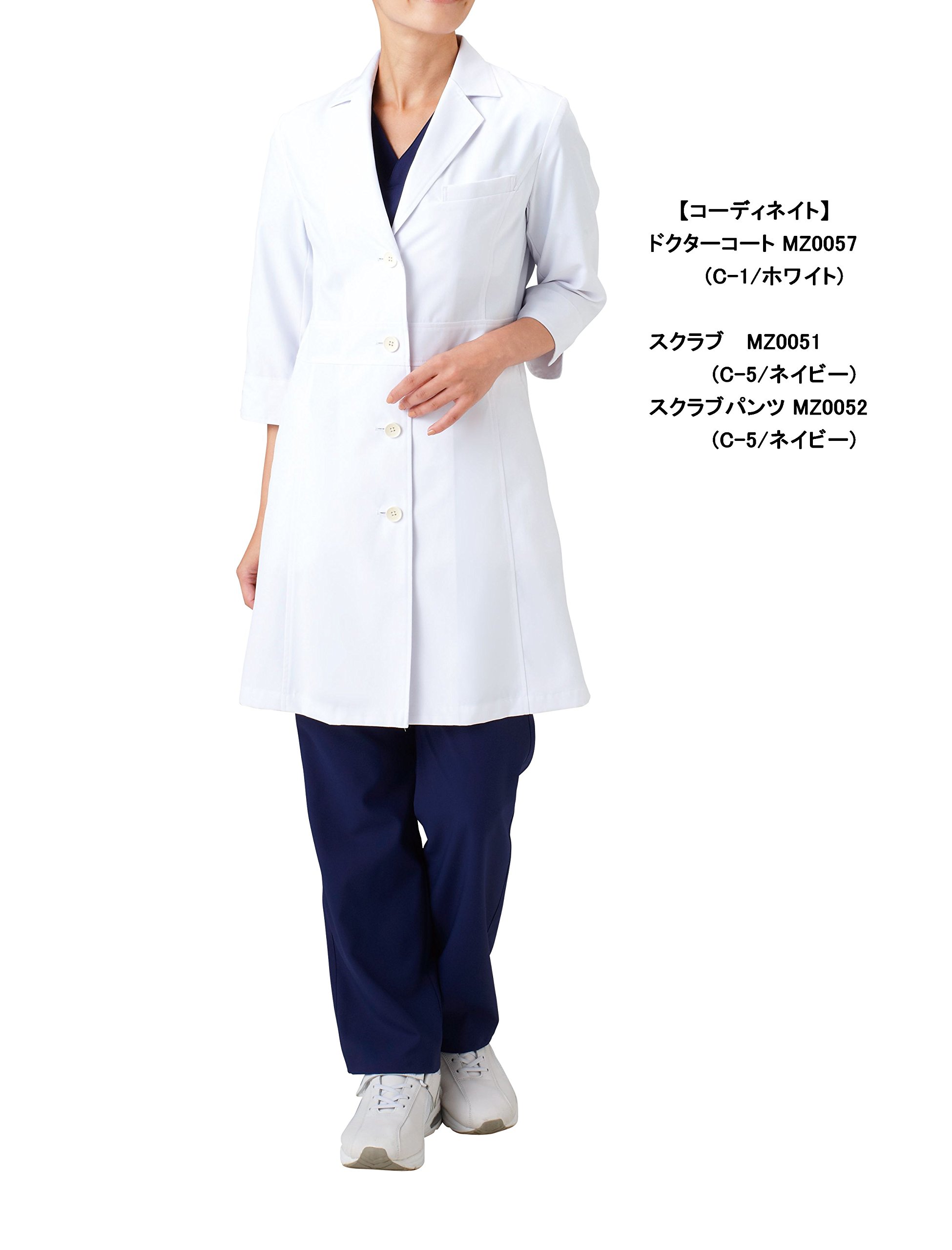 Women's doctor coat pursuing mobility by adopting Mizuno's proprietary advanced technology "Dynamotion Fit".