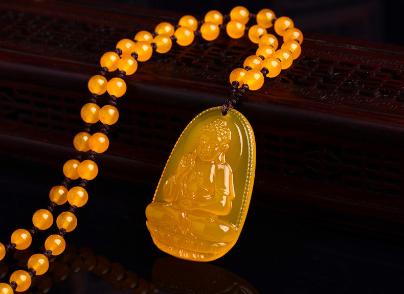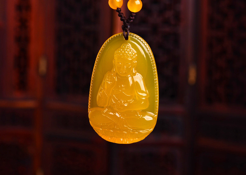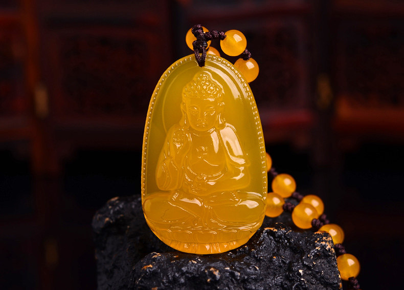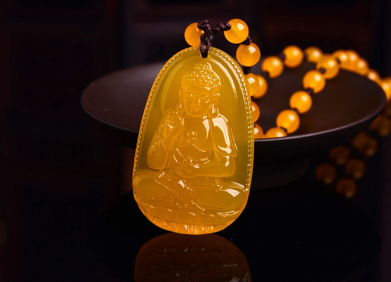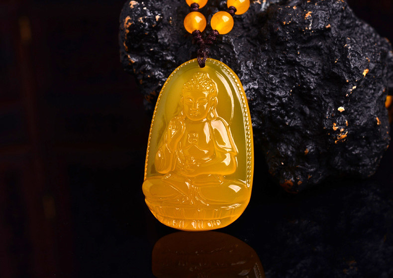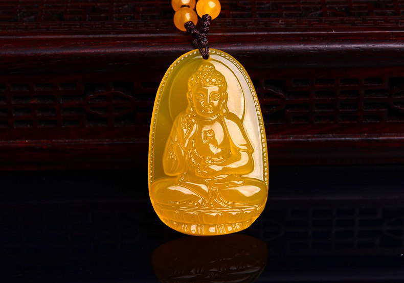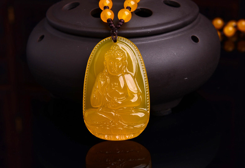 开光 黄玉髓阿弥陀佛吊坠生肖属猪狗终生守护神 本命佛男女