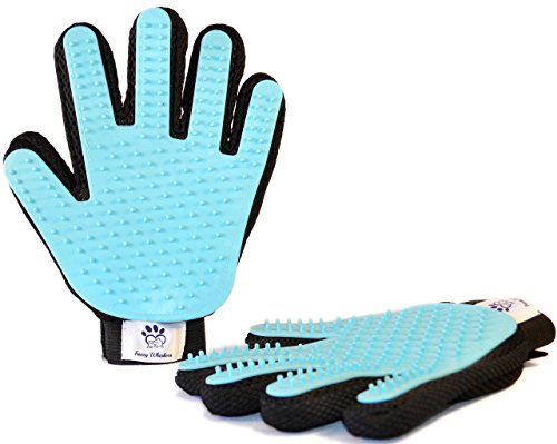 Pet Grooming Glove Pair By Fuzzy Whiskers, Gentle Deshedding Brush Glove, Five Finger Design, Perfect Hair Remover and Massage Tool, For Cats/Dogs/Rabbits/Horses with Long & Short Fur