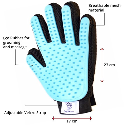 PERFECT FOR GROOMING - Pet Grooming Glove Pair By Fuzzy Whiskers is a great grooming device. It helps to minimise shedding and brushes away hair tangles so you can keep your pet's coat softer, healthier and less likely to shed. And as a result, a cleaner home and happier family.