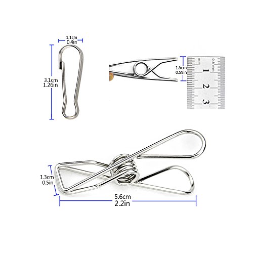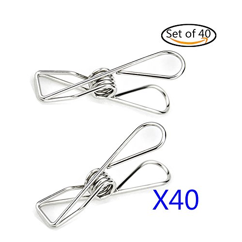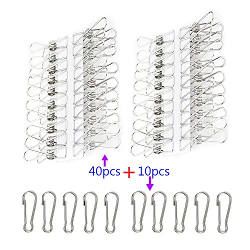 Pack of 40 Sliver 2.2 Inches Stainless Steel Wire Clips with 10 Bonus Gourd Shape Mini Clips, Windproof Clothespins Metal Clips for Outdoor Indoor Drying Home Laundry Office Usage