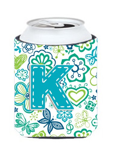 Letter K Flowers and Butterflies Teal Blue Can or Bottle Hugger CJ2006-KCC