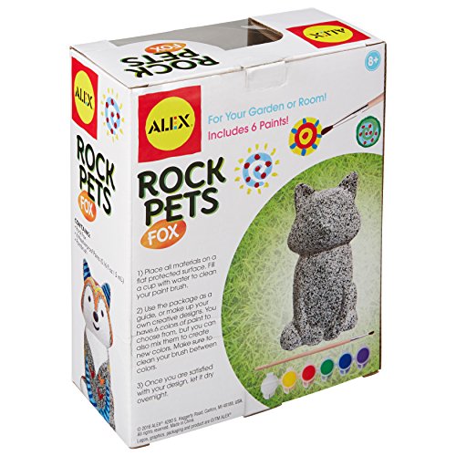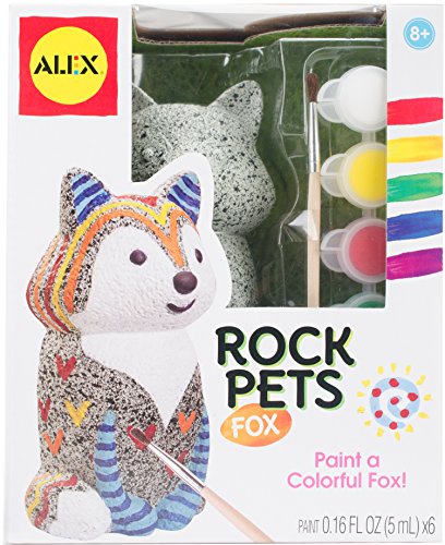 ALEX Toys craft rock pets fox lets you paint and personalize your own sly fox. Transform a pretend rock into a work of art in no time. Weatherproof paints allow your masterpiece to be displayed anywhere indoors and outdoors. Choose your favorite color combinations or make a gift for a friend or relative. Rock pets totally rock! recommended for children 8 years of age and older.Feature