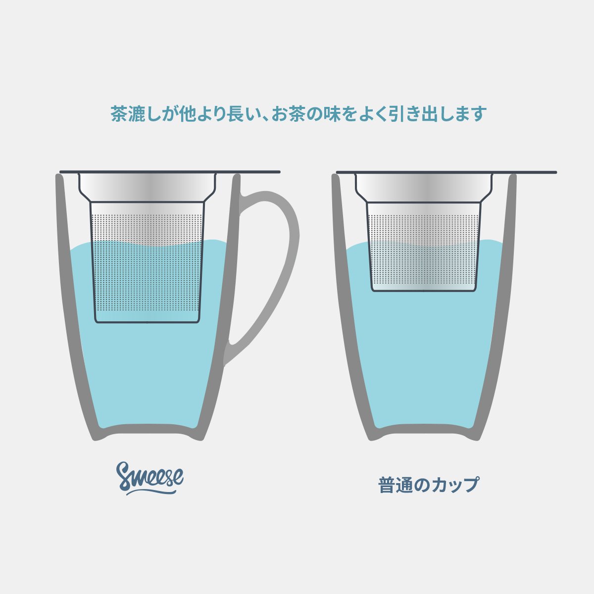 There is 7.6 cm in depth, about half of the cup, so when you want to put in tea for a while it is OK.