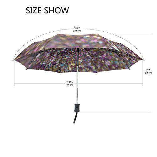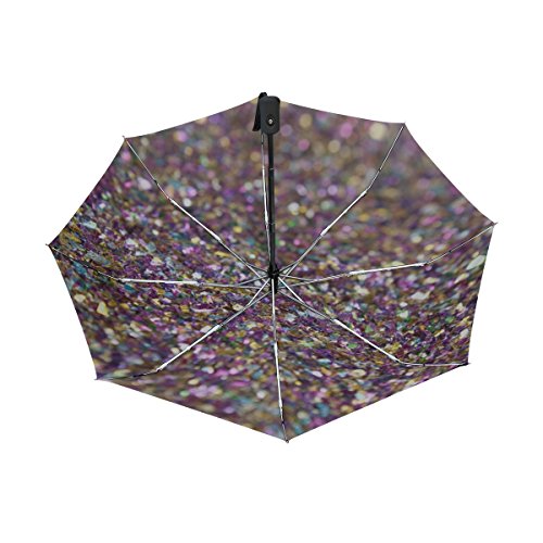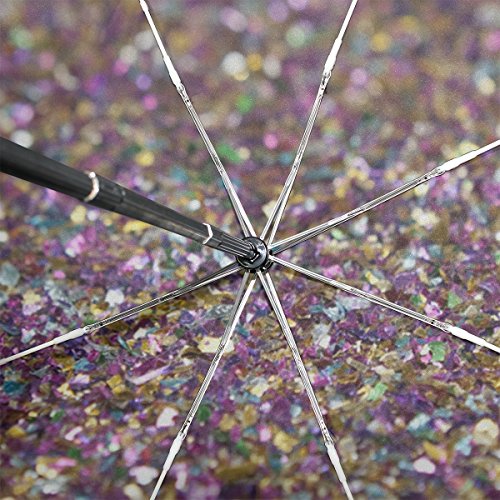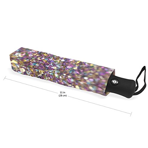 materials: made of 100% polyester pongee waterproof fabric. Weight: it is lightweight, 393g. Single-sided printing. Style: automatic open and close umbrella; foldable mini travel umbrella. Can be used on rainy and snowy day. Suitable for boys, girls, women and man. Feature: Light weight, small, portable. This Multicolor Glitter Close Up folding umbrella is also a perfect Christmas gift, new year gift, and back to school gift. 0