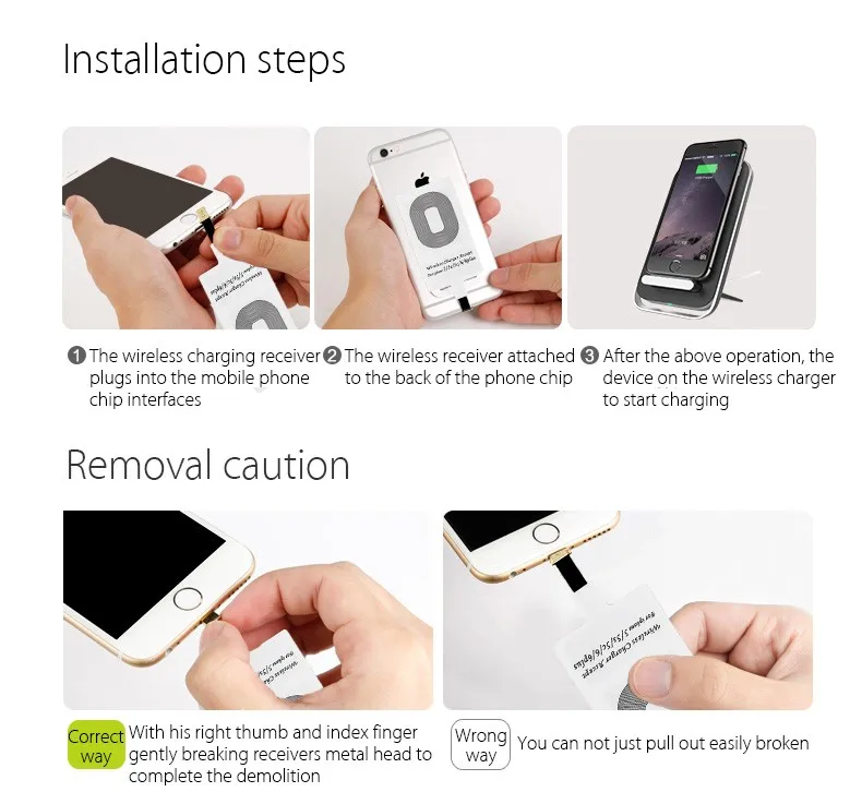 Step 2: Stick the receiver card to the mobile phone's battery and the two protuberant touch points must touch the two recesses next to the battery.
