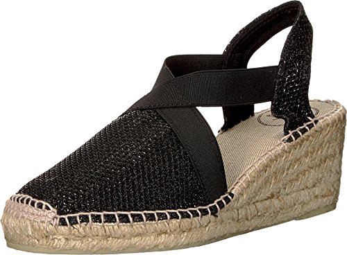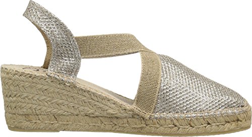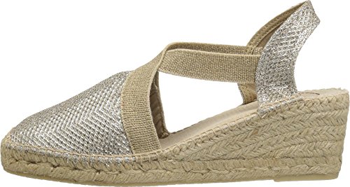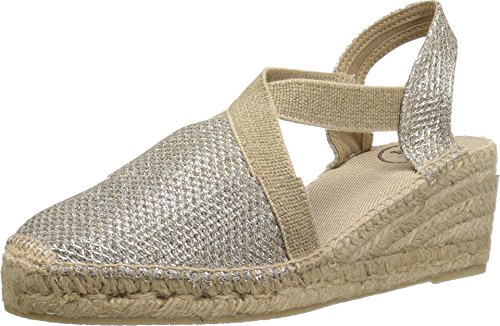 Binding : Apparel Product Description Add a sparkling touch of top-notch style to your weekend ensemble with the Triton wedge by Toni Pons®. Shimmery metallic upper. Easy slip-on with elastic straps for a comfortable fit. Fabric lining. Cushioned insole. Espadrille-wrapped midsole. Rubber outsole. Made in Spain. Measurements: Heel Height: 2 1?4 in Weight: 10 oz Platform Height: 3?4 in Product measurements were taken using size 39 (US 8-8.5), width M. Please note that measurements may vary by size. 0