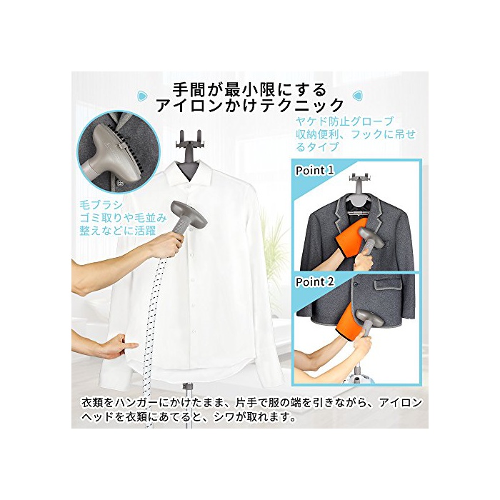 원본상품명: SALAV ハンガ?スチ?ムアイロン ガ?メントスチ?マ? 衣類スチ?マ? コ?トアイロンスチ?マ?インスタント アイロン便利 シワ伸ばす 除菌 消臭 3in1機能 ズボンプレス ブラシ 手袋