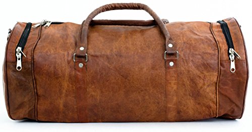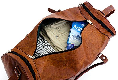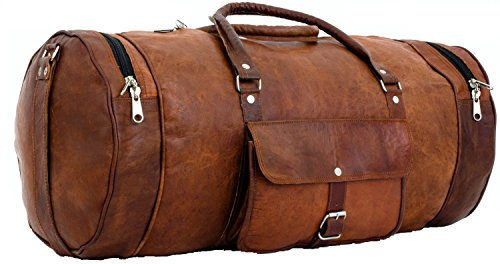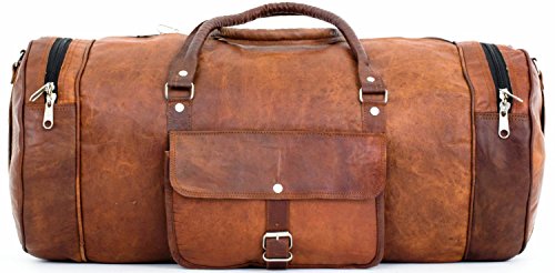 -. Brand : FeatherTouch -. Color : Brown -. Department : unisex -. Feature : 100% Genuine leather. Imported / Dimensions: 24 inches (length), 11 inches (height), 11 inches (depth). Adjustable shoulder Strap, Big main compartments for clothing /travel and sports gear etc, Two Side pockets for accessories etc. Front pocket for cash /mobile / New genuine leather Duffel bag / Travel Bag handcrafted with vintage style / 1 front pocket, Top Zipper compartment and 2 Side pocket / Strong & durable brass fittings & buckles, quality zippers, heavy duty lining -. ProductGroup : Apparel -. ProductTypeName : LAGE -. Size : 24x11x11 inches -. Title : 24" Large Leather Duffel Travel Holdall Weekend Overnight Cabin Sports Gym Bag