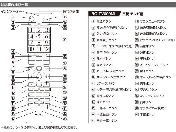 | リモコンの増設、取り替えに便利なテレビリモコン。 |