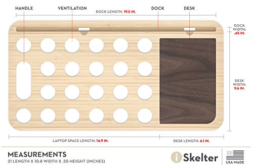 Slate Color LapDesk - Features Extended Phone and Tablet Dock, Colorful Desk Space, and Heat Protection - American Made by iSkelter Workshop - Premium Quality (Classic Walnut)