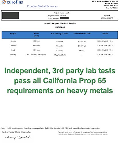 -. Feature : • 100% USDA Organic Pure Pine Bark Powder (our product label still states non-organic but it's organic!) / • A RICH HISTORY | Pine Bark has been used as a traditional remedy for a wide range of health issues since 1500's. Found throughout colder temperate climates, pine bark extract is a more purified version of pine bark. Our pine bark extract is made from the bark of the massoniana, which contains naturally occurring substances called oligomeric proanthocyanidins (OPCs). / • LOADED WITH KEY BENEFITS | Pine Bark is used worldwide for its antioxidants and anti-inflammatory properties. When used regularly, pine bark may support healthier cardiovascular and circulatory function. / • Highly concentrated pine bark, taste profile is bitter with tannic notes / • 90-120 Servings Per Bag, Recommended Serving Size 1/4 teaspoon30 Day Money Back GUARANTEED, PACKAGING: Heat-sealed and re-closeable bag to retain freshness