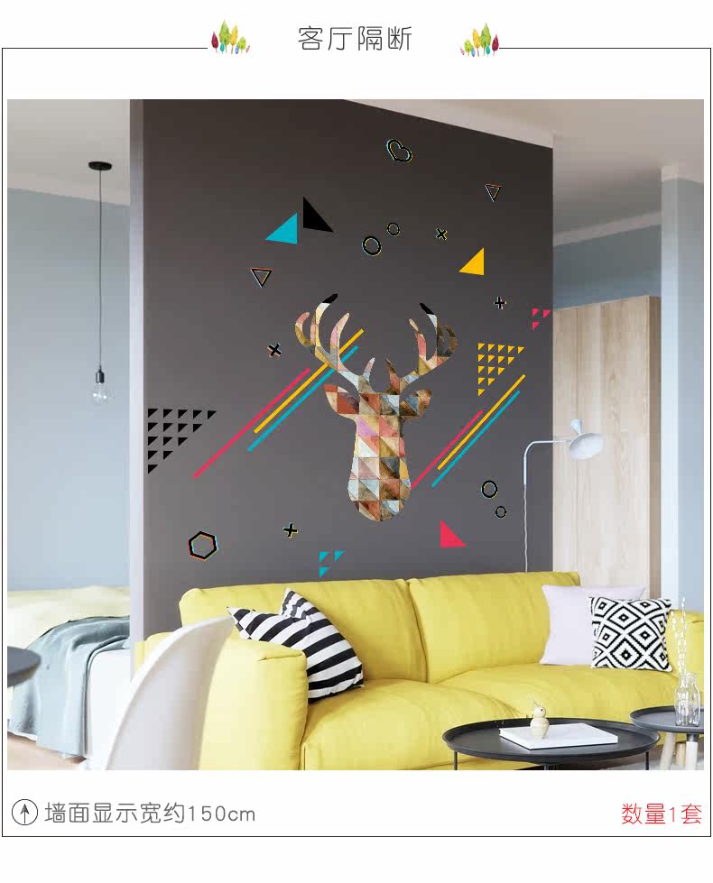 彩色印象电视背景墙贴纸创意客厅沙发墙壁装饰卧室床头贴画自粘