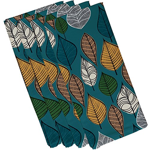 E by design Autumn Leaves, Floral Print Napkin (Set of 4), 19 x 19", Teal