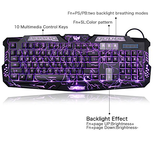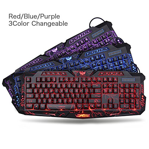 3 Colors LED Backlit Mechanical Keyboard. Cool LED backlighting on keyboard, 3 colors changeable breathing. You can adjust backlit and breathing mode whatever you are playing game or working.