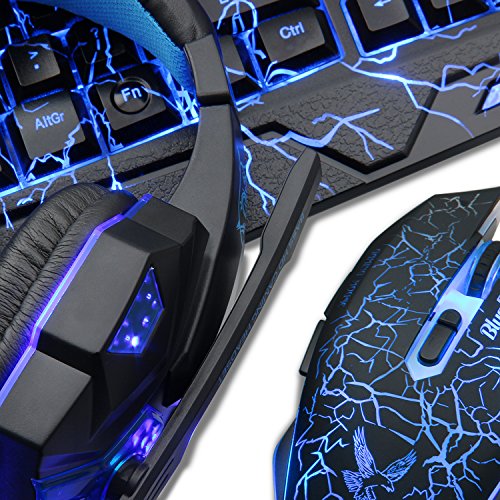 BlueFinger LED Gaming Over-Ear Headset Headphone,Backlit Gaming Keyboard Mouse Combo Set USB Wired With 40mm Speaker Driver and Gaming Mouse Pad 19 Keys work simultaneously.Each key is controlled by a separate switch.Let you enjoy high-grade games with fast response.