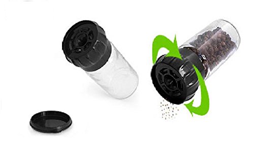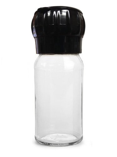 Glass Salt, Spice or Pepper Mill. Four oz. Glass Bottle with Black Grinder Mechanism and Cap