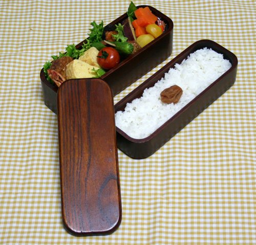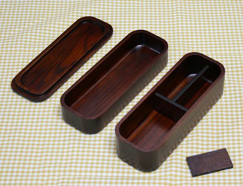 Matsuri no Eemon Slim Two-level Bento Box Hollowed Wood Lacquered