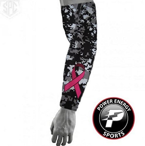 -. Binding : Misc. -. Brand : Power Energy Sports -. Feature : Compression fit and stretch fabric for muscle support and freedom of movement. / Moisture wicking performance fabric keeps you dry and comfortable. / 83% sublimated Polyester/17% Spandex. / Provides protection from UV rays. / Click thumbnail image for sizing information -. Label : Power Energy Sports -. Manufacturer : Power Energy Sports -. ProductGroup : Sports -. ProductTypeName : SPORTING_GOODS -. Publisher : Power Energy Sports -. Studio : Power Energy Sports -. Title : Baseball Sports Compression Arm Sleeve - Pink Ribbon / Black Camo