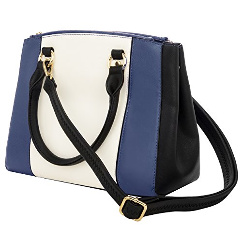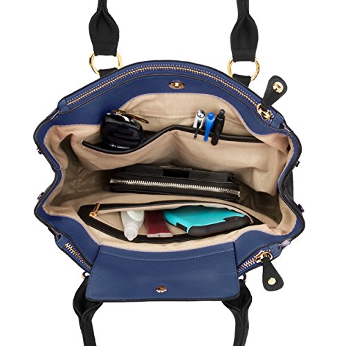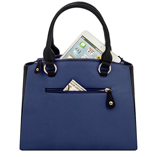 Martha Vegan Leather Two-Tone Satchel Bag with Removable Shoulder Strap fits up to 12” Tablets(MarthaSatchelRBLU)