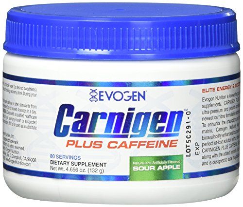 -. Binding : Health and Beauty -. Brand : Evogen -. EAN : 0685450688048 -. Feature : This product may be taken pre-workout / This product is sour apple flavored / This product should only be consumed by healthy adults over 18 years of age -. IsAdultProduct : 0 -. Label : Evogen -. Manufacturer : Evogen -. Model : P24109 -. MPN : P24109 -. NumberOfItems : 1 -. PackageQuantity : 1 -. PartNumber : P24109 -. ProductGroup : Health and Beauty -. ProductTypeName : HEALTH_PERSONAL_CARE -. PublicationDate : 2016-08-19 -. Publisher : Evogen -. ReleaseDate : 2016-08-16 -. Studio : Evogen -. Title : Evogen Carnigen 80 Servings Plus Weight Loss Powder, Sour Apple, 4.656 Ounce -. UPC : 685450688048