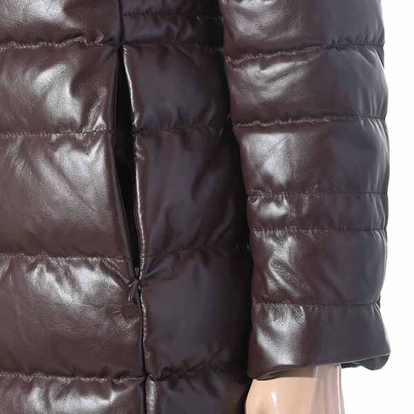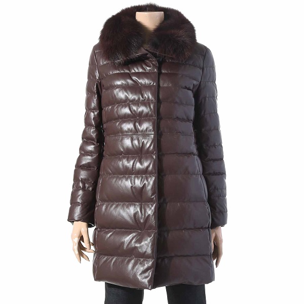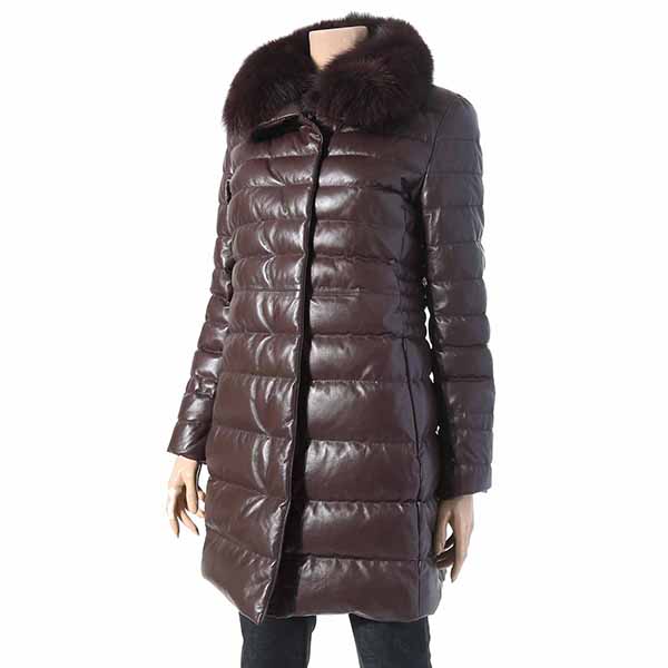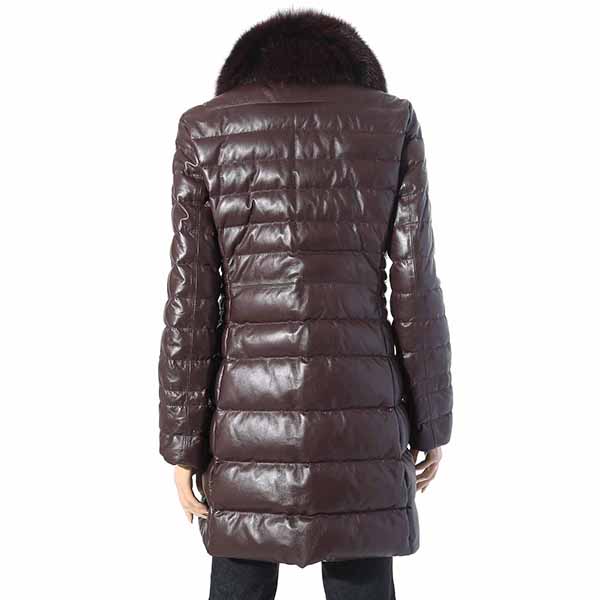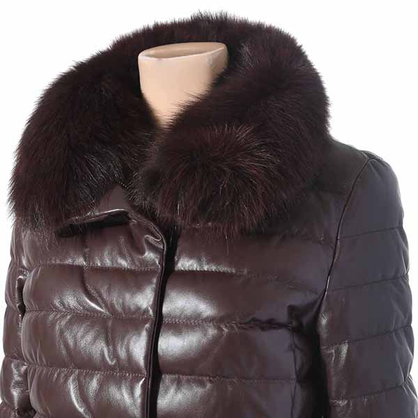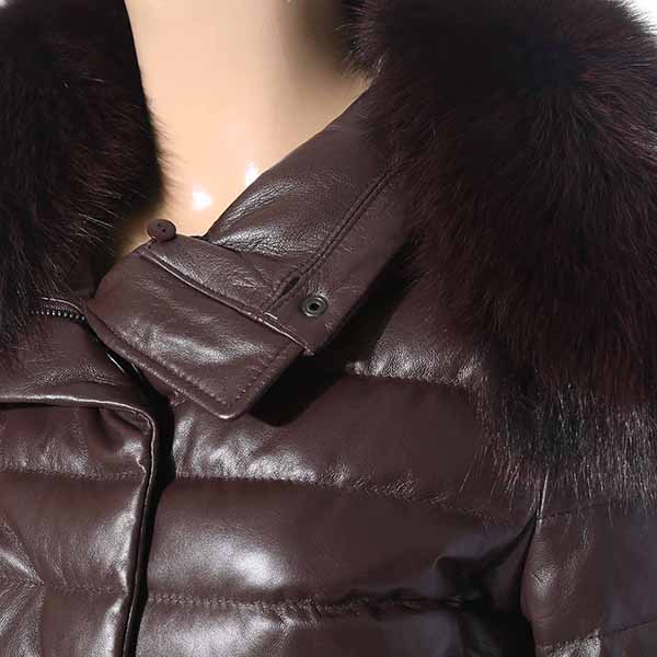 고급스러운 칼라감과 부드러운 양가죽을 사용한 가죽 다운 코트로