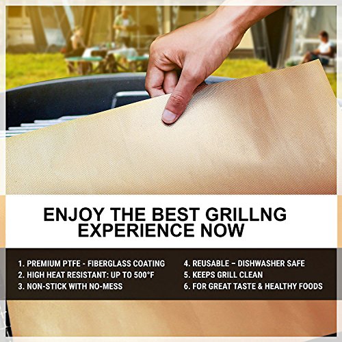 【FDA-APPROVED】Our BBQ grill mats are made from 100% PFOA-Free materials and premium PTFE-Fiberglass coating, no PFOA, silicone or other dangerous chemicals! Certified as safe by the FDA, approved and guaranteed with a lifetime warranty.
