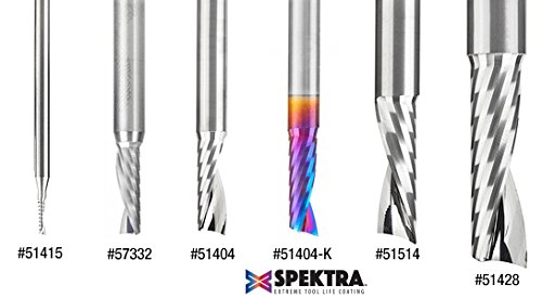 Amana Tool 51511 SC Spiral 'O' Single Flute, Plastic Cutting 1/8 D x 1/2 CH x 1/4 SHK x 2 Inch Long Down-Cut CNC Router Bit with Mirror Finish